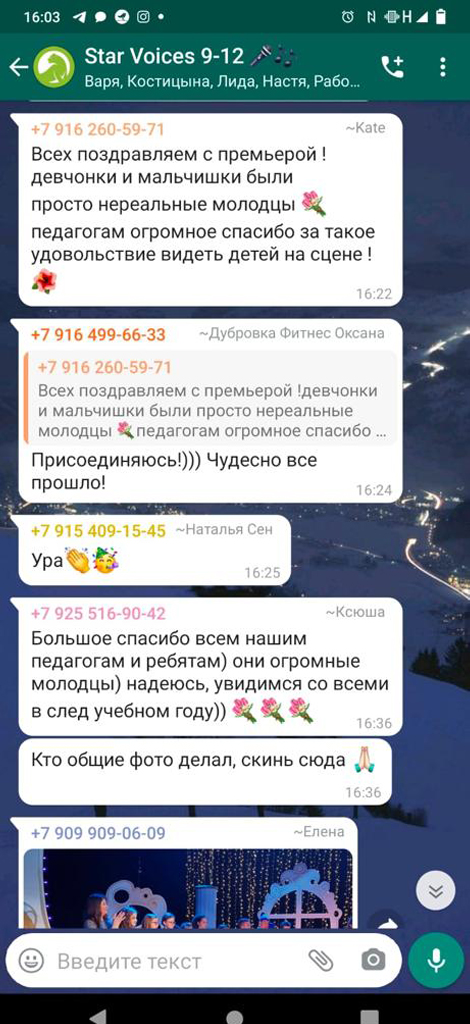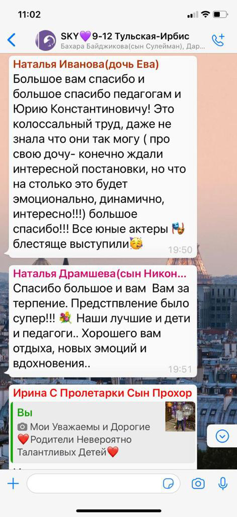 Абсолютно каждый наш ученик обогатится культурно, ведь мы регулярно ходим на спектакли, мастер-классы, а также устраиваем собственные культурные мероприятия, включая детские театральные сборы